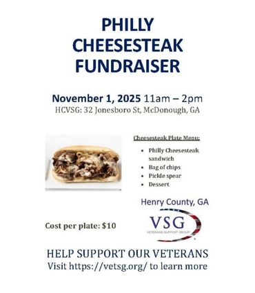 Dog Tag Jeepers will join the Veterans Support Group (VSO) McDonough for their Philly Cheesesteak Fundraiser. We will be handing out gift b...